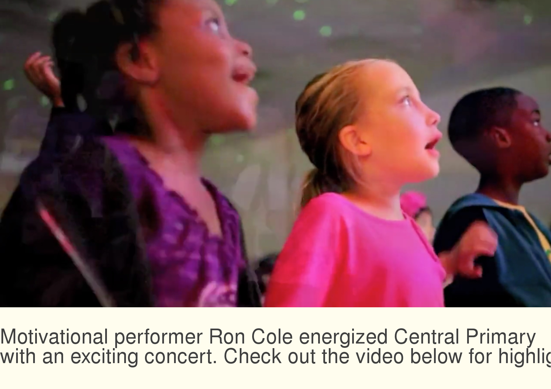 Motivational performer Ron Cole energized Central Primary with an exciting concert. Central Primary School serves 2nd and 3rd graders in the Arkadelphia Public Schools, Clark County, Arkansas - Home of the Arkadelphia Promise.