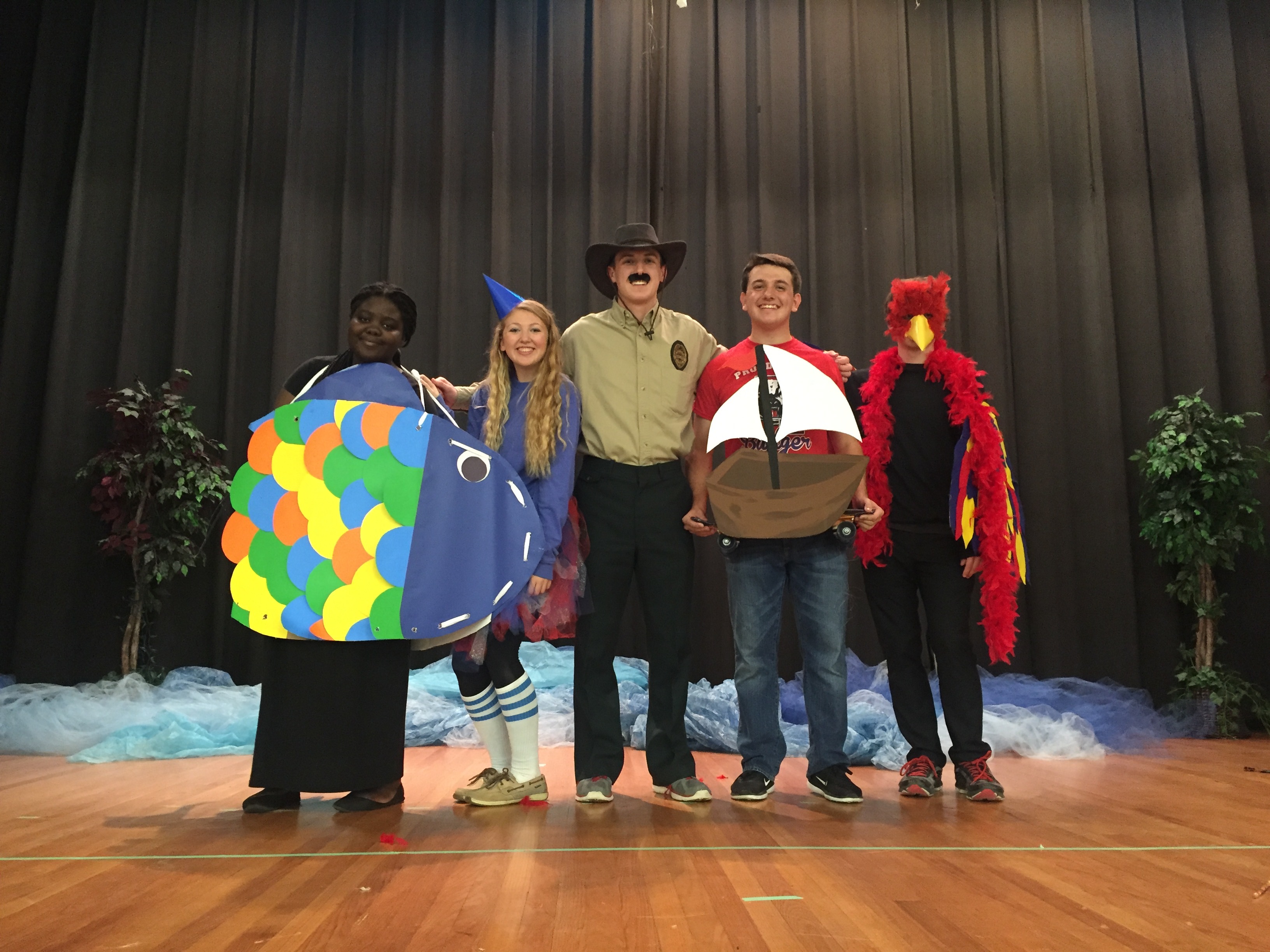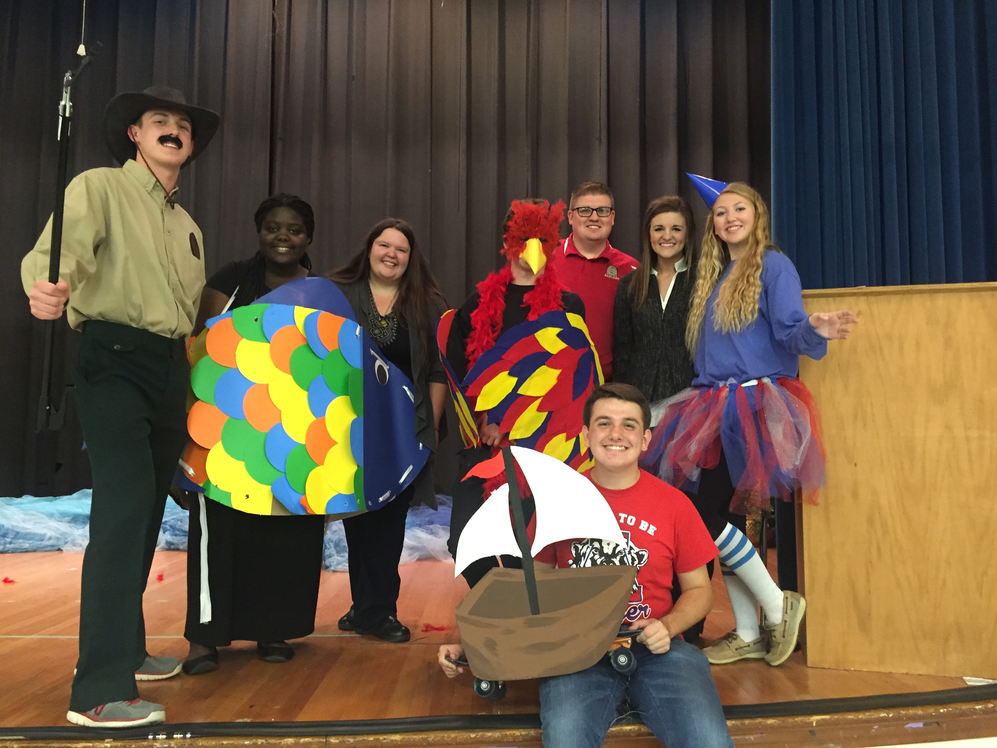 The play consisted of five main characters: the Drain Ranger (played by Jared Garner), Clark (played by Jack Bennington), Rita Raindrop (played by Kayla Thompson), Wally Walleye (played by Pempho Moyo) and Harry Heron (played by Chris LeVar). It told the story of Clark’s adventure through the storm drain to the Caddo and Ouachita Rivers in search of his toy sailboat. The Senior Advisory Committee spent several volunteer hours preparing for the production and put on an outstanding performance for Central's students.