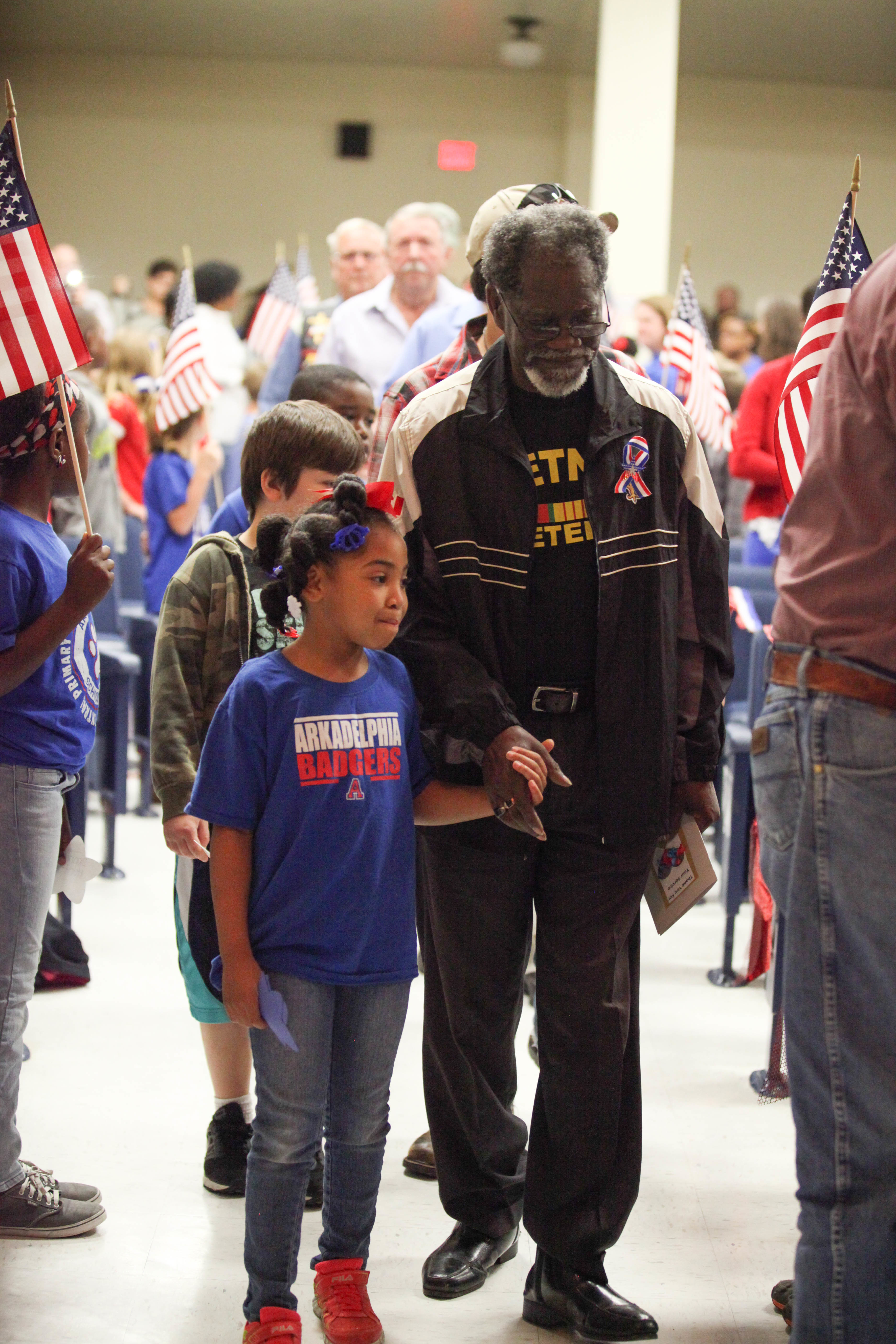 To kick off the assembly, local veterans entered Central’s auditorium down an aisle lined with students holding the American flag.