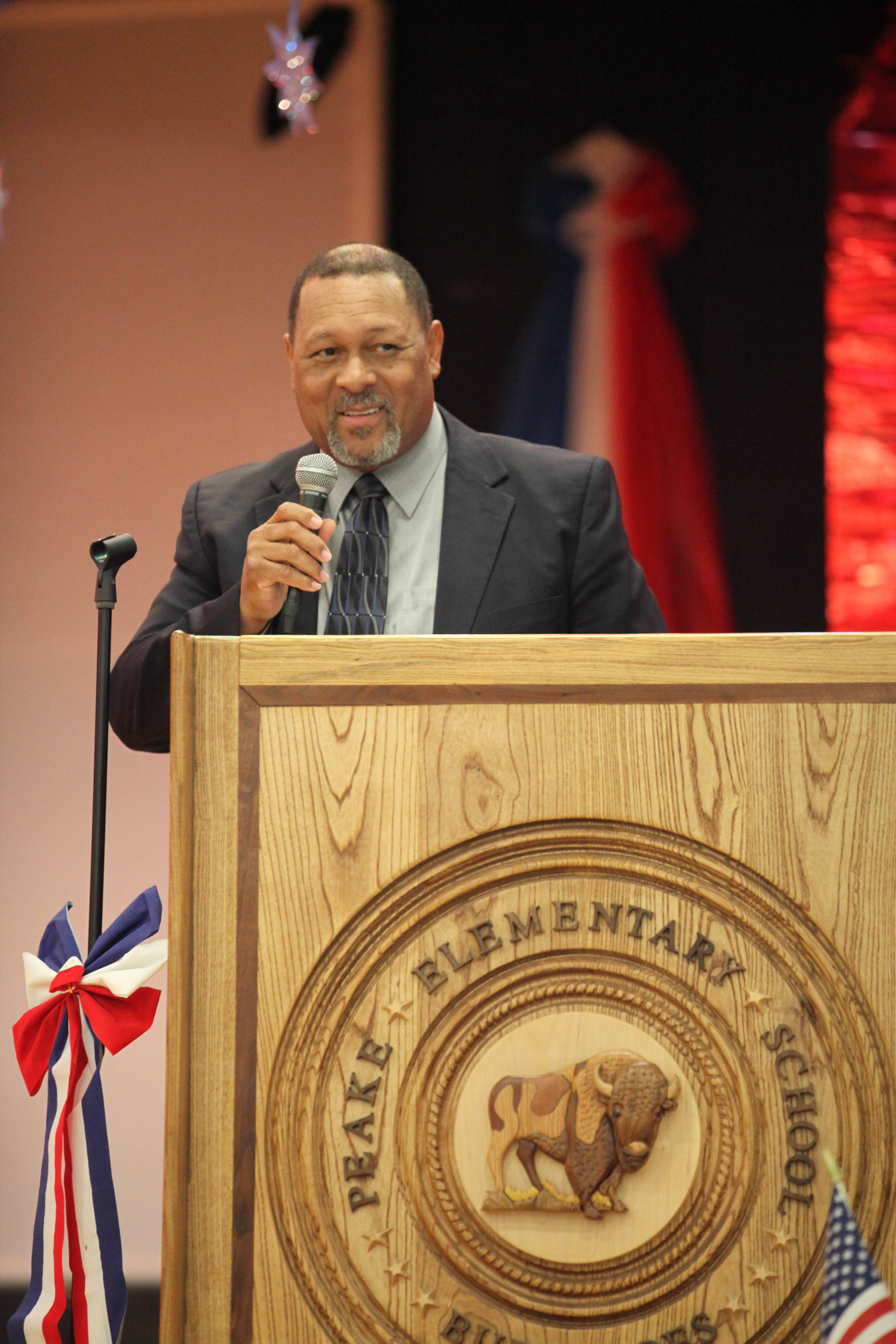 Peake Elementary School celebrated Mr. J. Ed Peake Day with an assembly on November 3. 18 guests from the Peake Alumni Foundation attended the celebration. Principal Nikki Thomas welcomed the guests, and students from Mrs. Snowden’s homeroom began the assembly with a performance from their latest musical, “American Voices.”