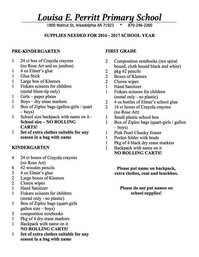 Perritt Primary's school supply list for pre-kindergarten, kindergarten and first grade is now available! We are excited about the 2016-17 school year!